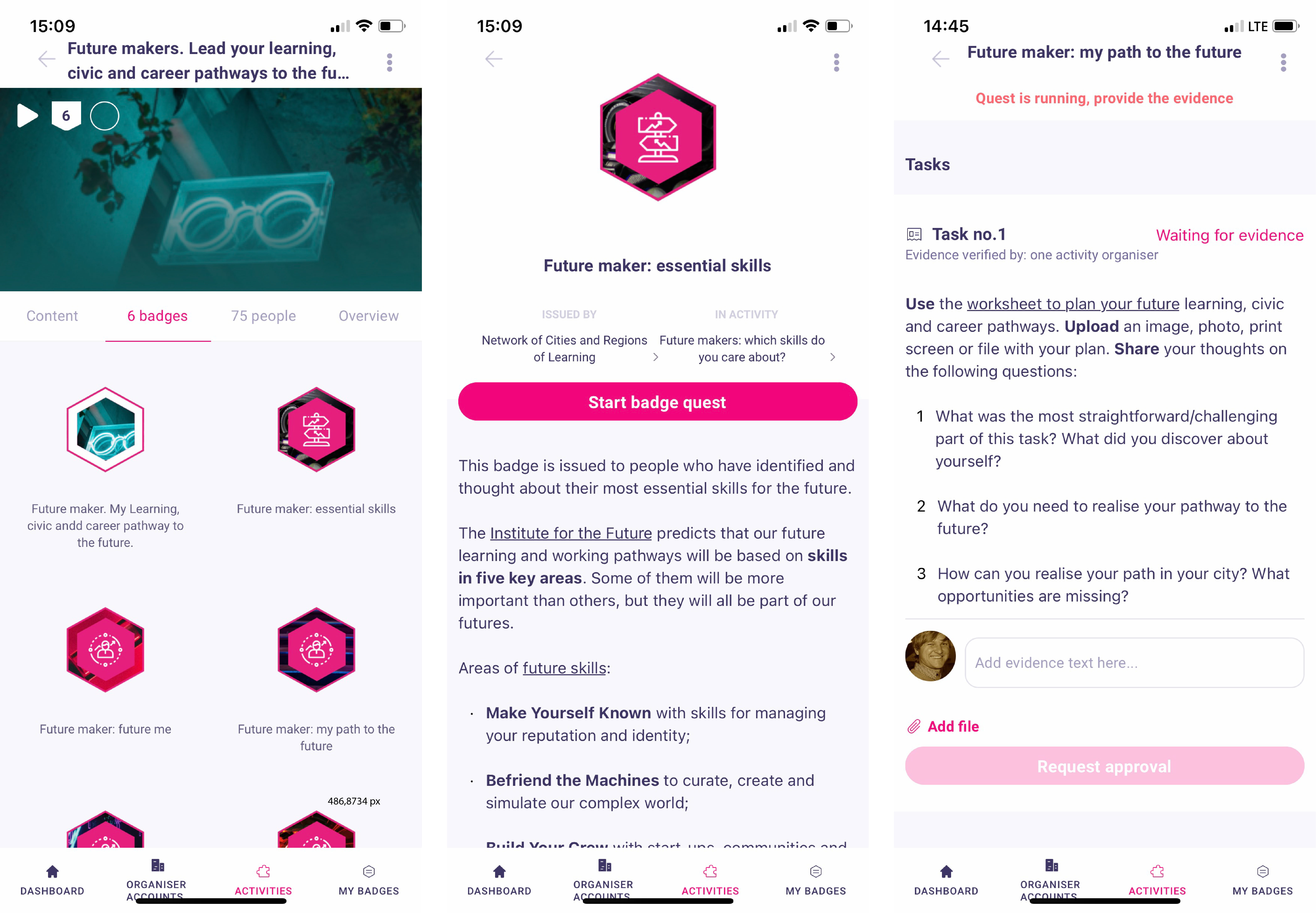Com a Badge Wallet, pode aceder a atividades e listas de aprendizagem (playlists) na plataforma Cidades da Aprendizagem (Cities of Learning). Pode utilizar esta aplicação móvel para ganhar, armazenar, gerir e partilhar microcertificados digitais (medalhas digitais).