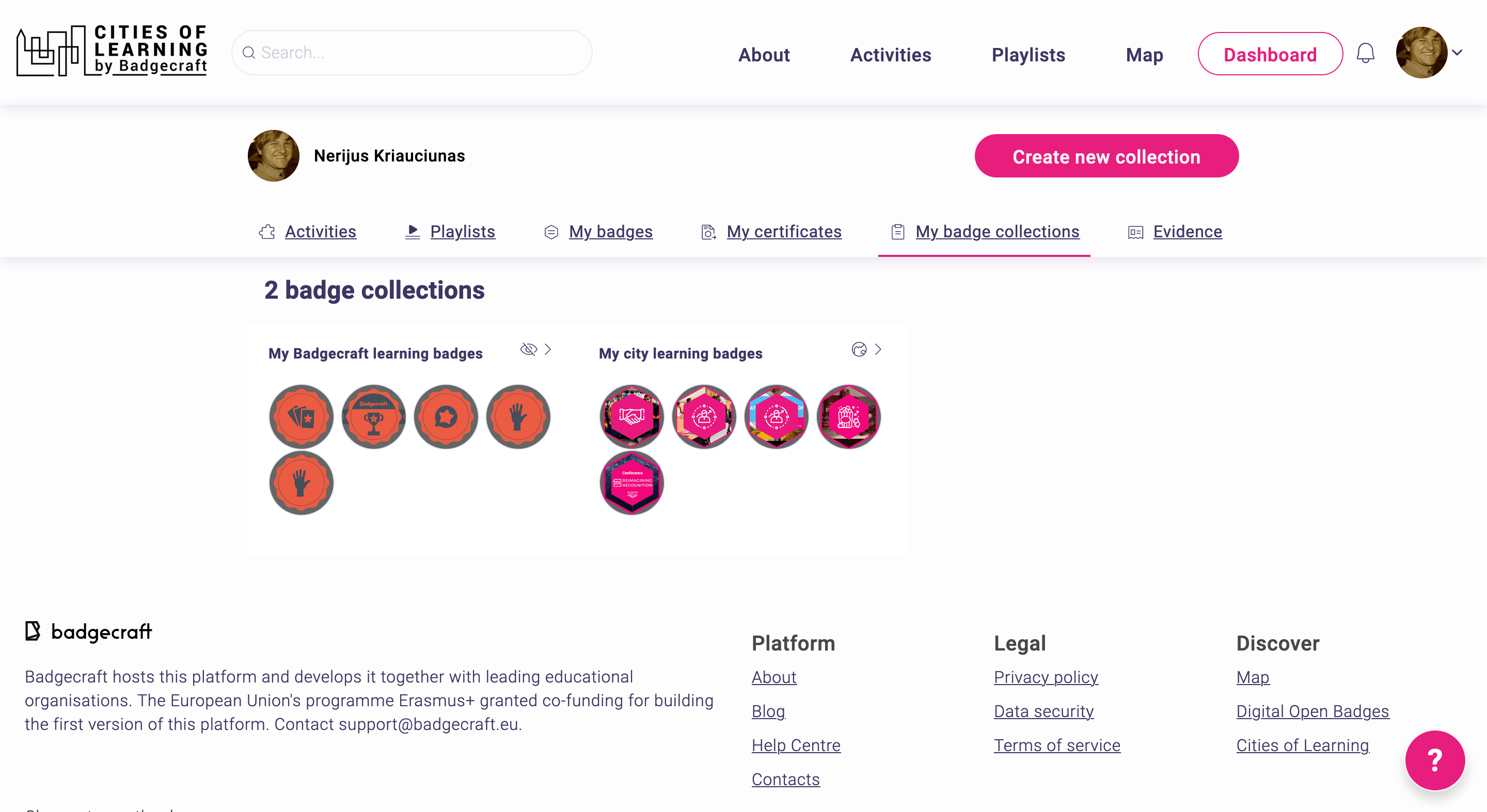 - Click on the Create new collection button (My Badge Collections -> Create new collection).