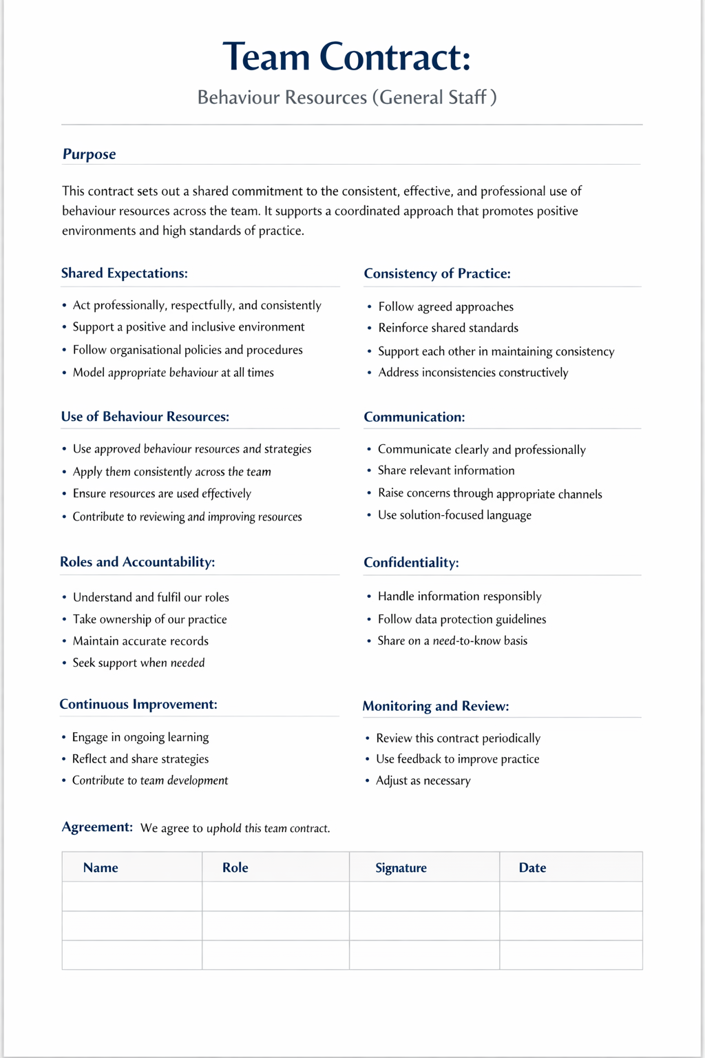 Step 0. Reflect on what spoken and unspoken rules have to be in a social contract, to ensure appropriate behaviour in a team.