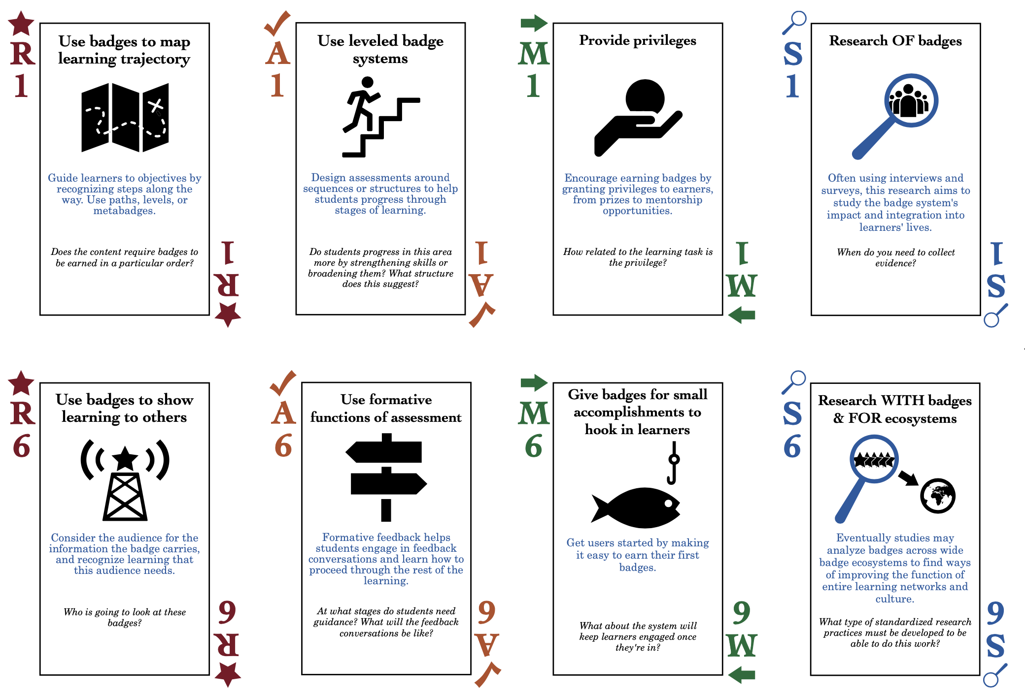 Ovde želimo da podelimo set kartica koje vam mogu dati mnogo ideja za šta se bedževi i sistemi bedževa mogu koristiti. Kartice su kreirane kao deo projekta Design Principles Documentation Project (DPD).